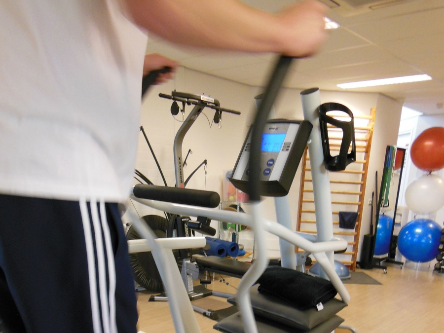 met of zonder behulp van apparatuur (bv. Theraband, Airex-mat, trampoline, etc.